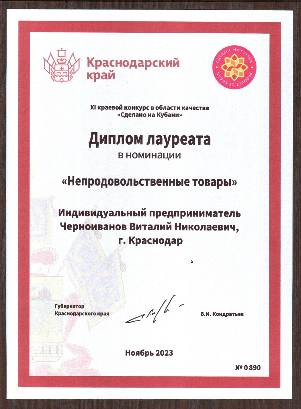 Знак качества «Сделано на Кубани» — престижная региональная награда Краснодарского края, присуждаемая лучшим производителям пищевой, промышленной, ремесленной и косметической продукции. Лауреаты конкурса получают право маркировать товары знаком, подтверждающим высокое качество и кубанское происхождение, а также получают преференции, такие как продвижение и заключение контрактов.